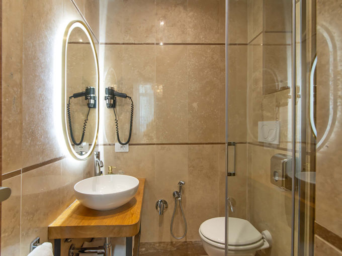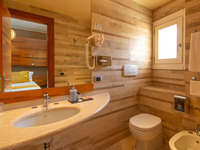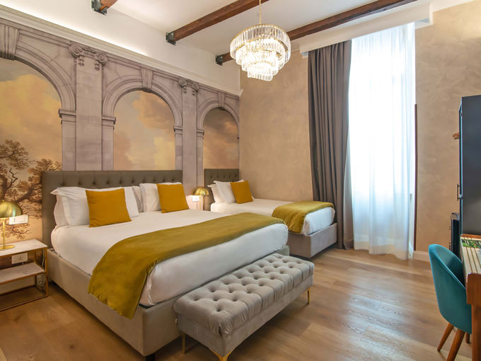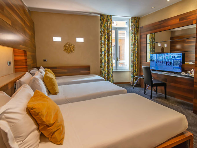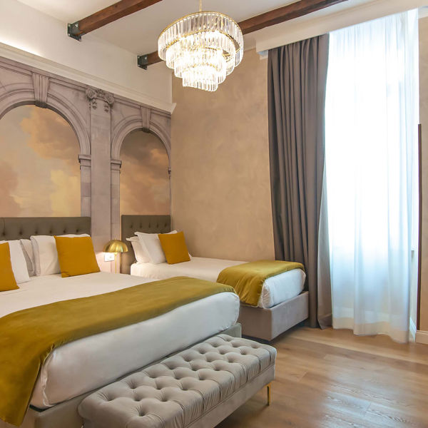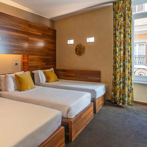 Habitación triple para 3 personas con cama doble + 1 cama individual o 3 camas individuales. Las habitaciones superiores tienen un estilo nuevo y elegante y minimalista.